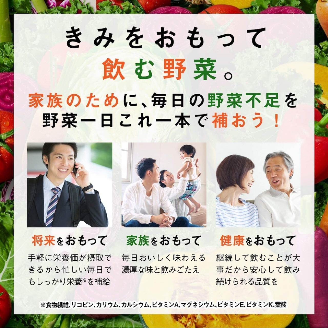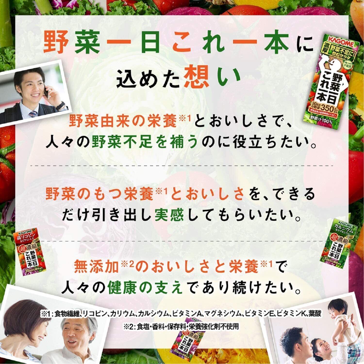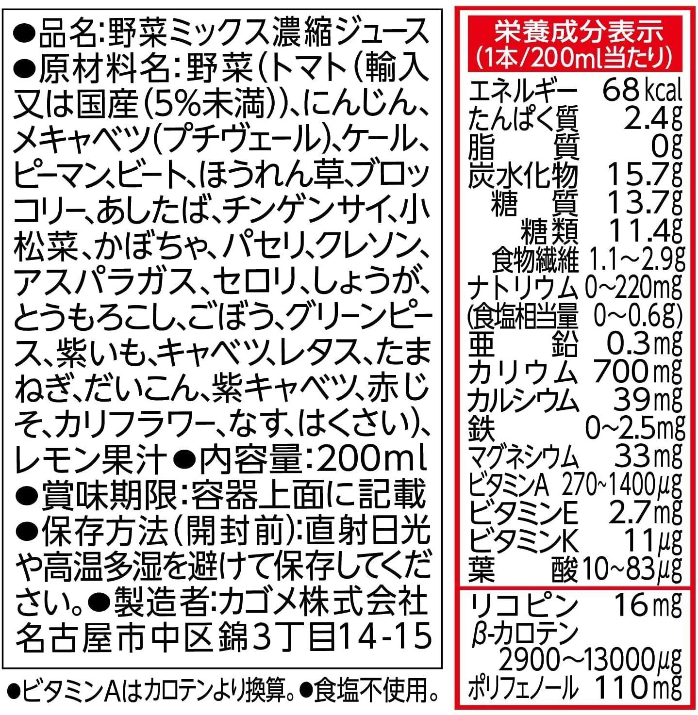 砂糖・食塩・甘味料不使用。野菜60%+果汁40%