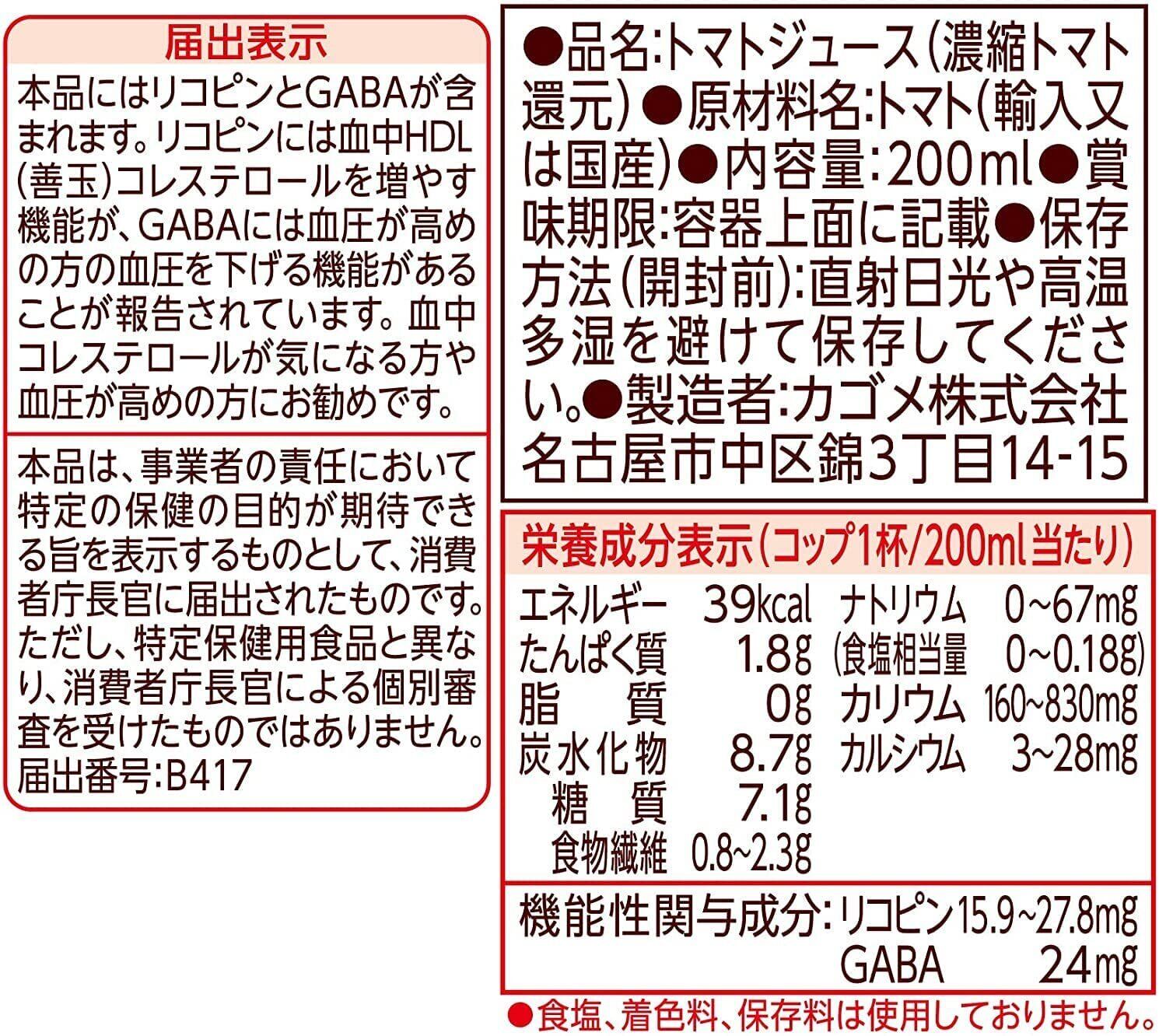 カゴメ トマトジュース 食塩無添加 200ml×24本[機能性表示食品]