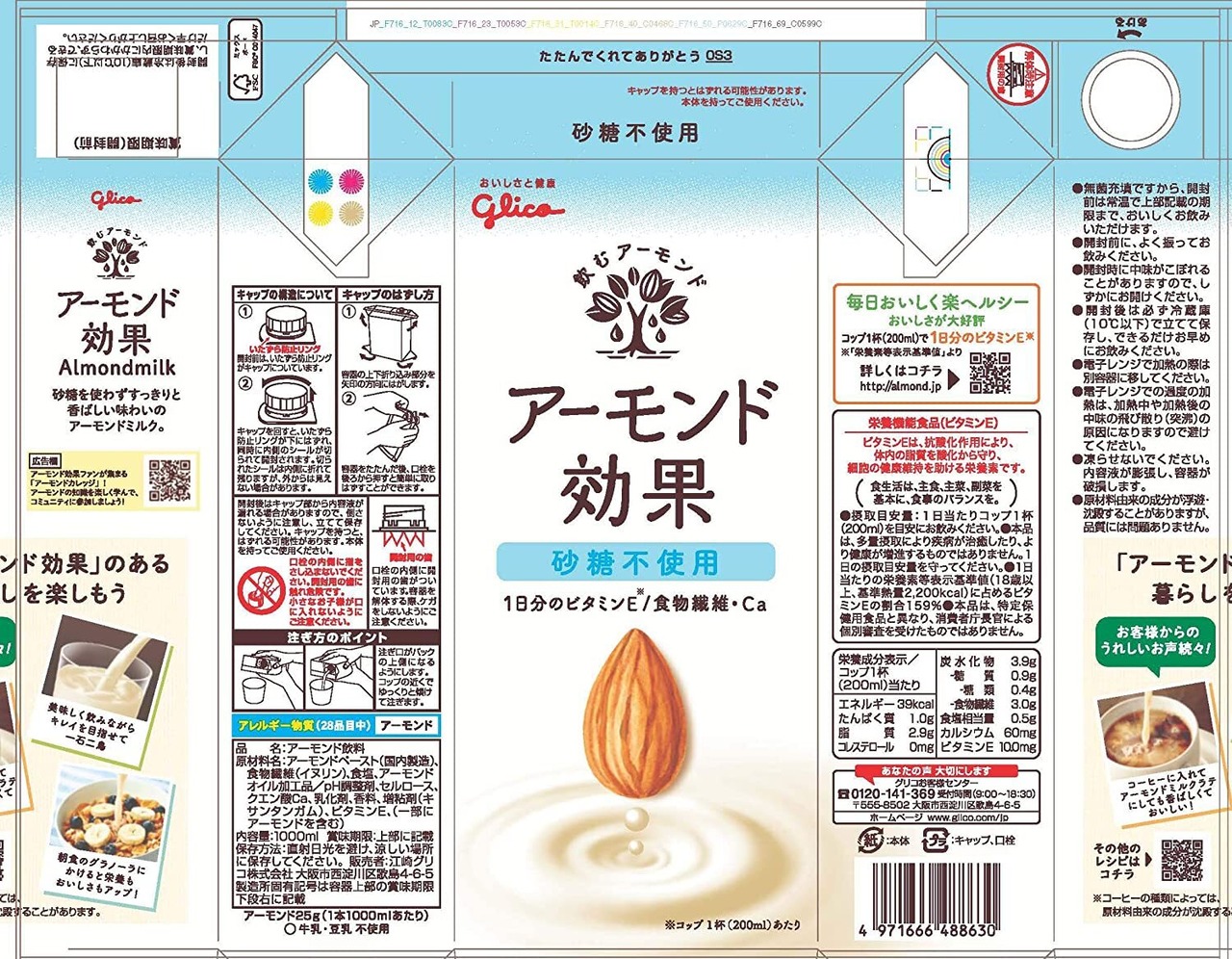 グリコ アーモンド効果 砂糖不使用 アーモンドミルク 1000ml×6本 常温保存可能