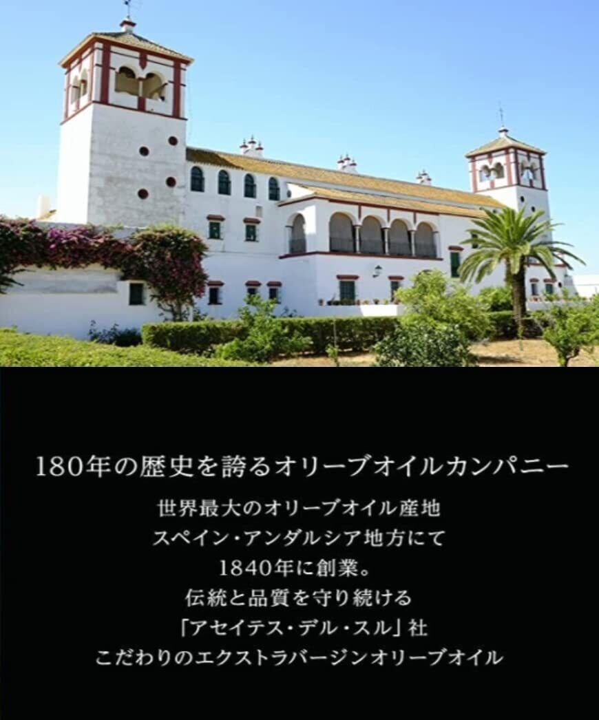 「アセイテス・デル・スル社」はスペインで最も歴史の古いオリーブオイル製造会社の一つとして伝統を守り続け、現在では世界200か国以上へ良質なオリーブオイルを輸出しています。アセイテス・デル・スル社のオリーブオイルは世界でも高い評価を得ており、「アシエンダ・グスマン」ブランドは毎年オリーブオイルジャパンで入賞(オリーブジャパン2020金賞受賞) しています。